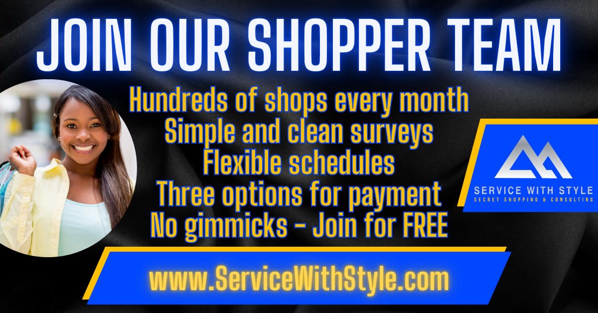 Service with Style has two upscale restaurants we shop several times a month. We offer both lunch or dinner shops at both locations. Both do need 2 people for the visits.